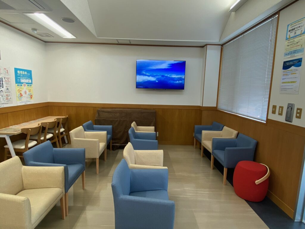 ひだまり内科クリニックの待合室は、カウンター越しにスタッフと会話ができる。